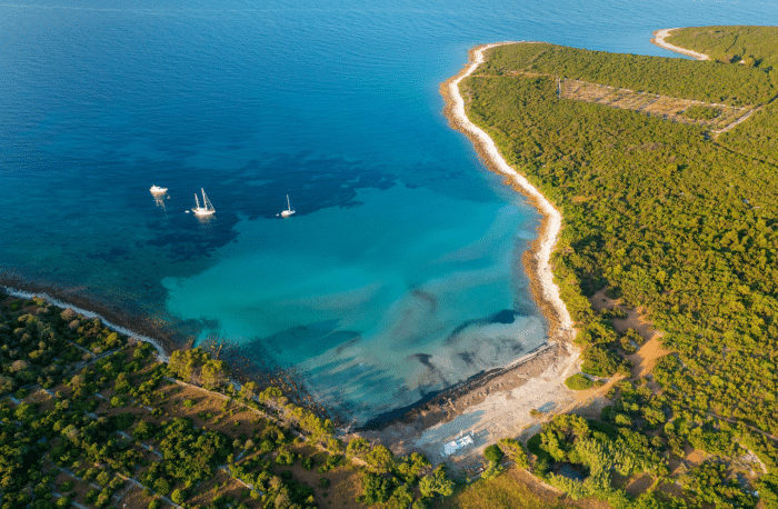 Cres ma wydłużony, wąski kształt i linię brzegową pełną zatok, które świetnie nadają się na dzienne postoje – zarówno na kąpiel, jak i na spokojny lunch na pokładzie. Od strony zachodniej znajdziesz zaciszne zatoki z dobrą kotwicą, często puste nawet w szczycie sezonu. Większość z nich osłonięta jest przed wiatrami z południa i wschodu, co daje żeglarzom duży komfort manewrowania i spokojnego odpoczynku.