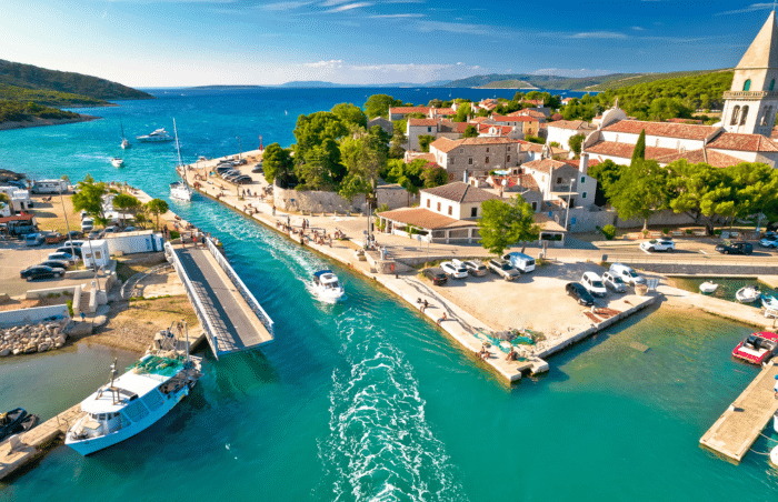 Jeśli szukasz czegoś mniej oczywistego, zajrzyj do Vrbnika. Port jest mały, płytki, cumowanie możliwe tylko dla mniejszych jednostek lub na boi, ale miasteczko warte jest zejścia na ląd. Stare uliczki są wąskie do granic możliwości (jedna z nich ma 43 cm szerokości), a widoki z klifów zapadają w pamięć. Vrbnik to także stolica lokalnego wina žlahtina – można odwiedzić jedną z piwnic i zaopatrzyć się na dalszą część rejsu.