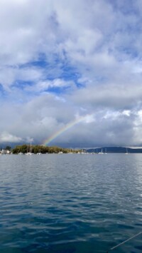 Popołudniowy spacer po miasteczku przypominał sceny z filmu katastroficznego… potoki wody płynęły wąskimi uliczkami, a z kamiennych schodów spływały potężne wodospady deszczówki. Na szczęście rano w końcu się przejaśniło. Cumy oddawaliśmy z widokiem na wspaniałą tęczę nad kanałem między Poros i Galatas!
