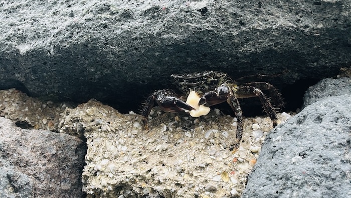 Nasza załoga w tym czasie szykowała kolację, a Leo łowił ryby, korzystając ze znalezionej na jachcie żyłki i haczyków oraz przynęty z upieczonego własnoręcznie placka na bazie mąki i jajek. Rano polował też na kraby, których na brzegu krystalicznie czystej wody widzieliśmy mnóstwo.