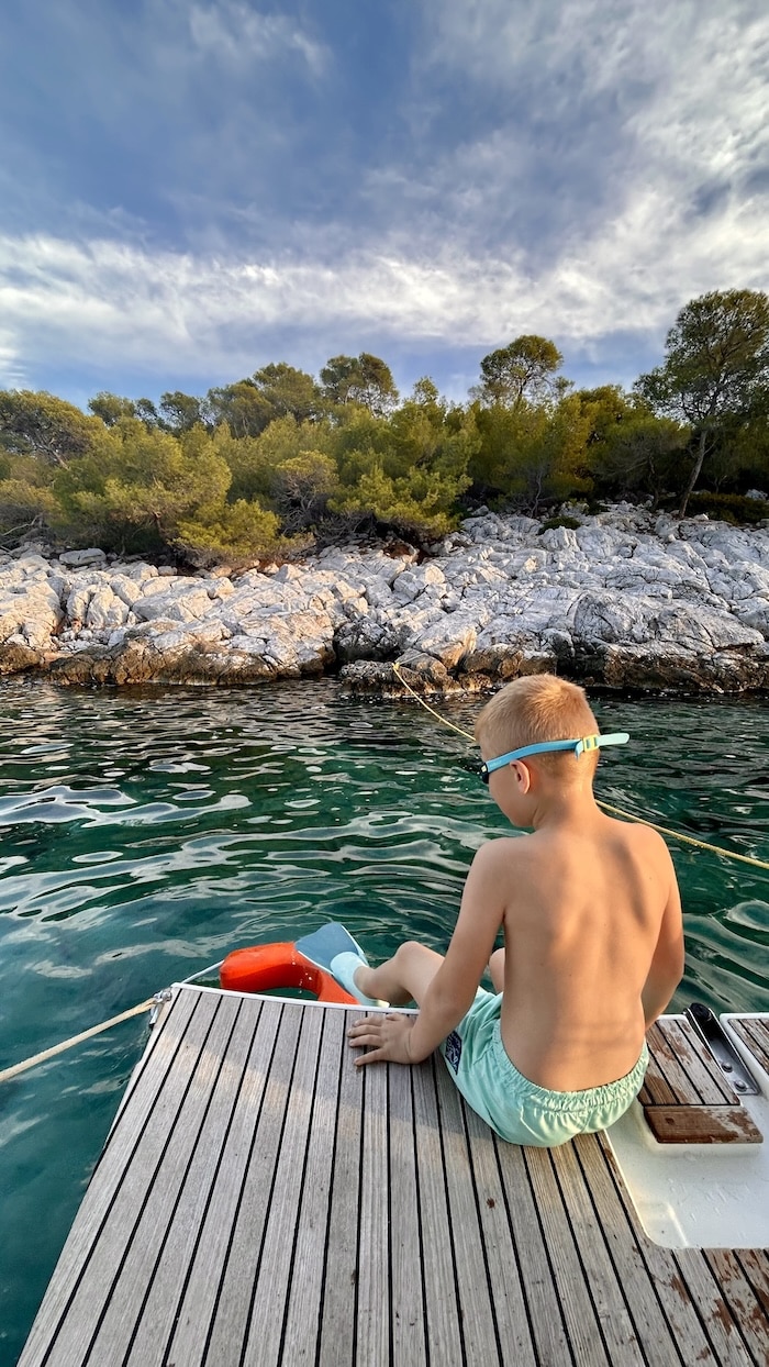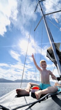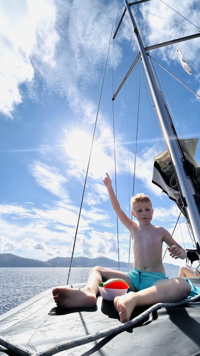 W temacie żeglowania z dziećmi potwierdzam swoje dotychczasowe poglądy: to świetny pomysł. Jednak nieco lepiej wychodzi, gdy na pokładzie są rówieśnicy. Leo był bardzo dzielny – sterował, czytał swoje książki (między innymi Odyseję! Czy jest lepsze miejsce na taką lekturę?), oglądał mapy, liczył koty, łowił ryby, chętnie kąpał się w morzu – ale doskwierał mu brak towarzystwa w jego wieku i dorosłe rozmowy, nie zawsze wciągające.