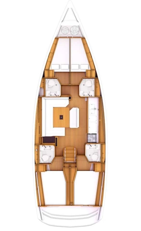 Jednym z moich priorytetów był budżet, ale miałam na uwadze także komfort – załogi i mój, jako skippera. Zdecydowałam się na jacht Luna Rossa – Sun Odyssey 479 z 2016 roku, odnowiony w 2021. Mimo wieku Luna Rossa jest w doskonałej kondycji, nawet po całym sezonie! To zasługa armatora, z którym współpracujemy od lat, między innymi właśnie dlatego, że tak dobrze dba o swoją flotę. Wszystko – od gniazdek i lampek, przez toalety, lodówki, klimatyzację, grzanie wody, radio, chart plotter… aż po pasy bezpieczeństwa, silnik, żagle i olinowanie – było w świetnym stanie i działało bez zarzutu.