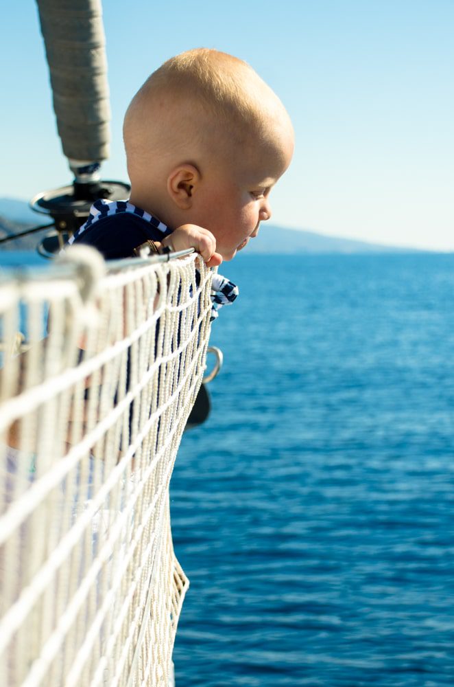 małe dziecko na jachcie w Grecji